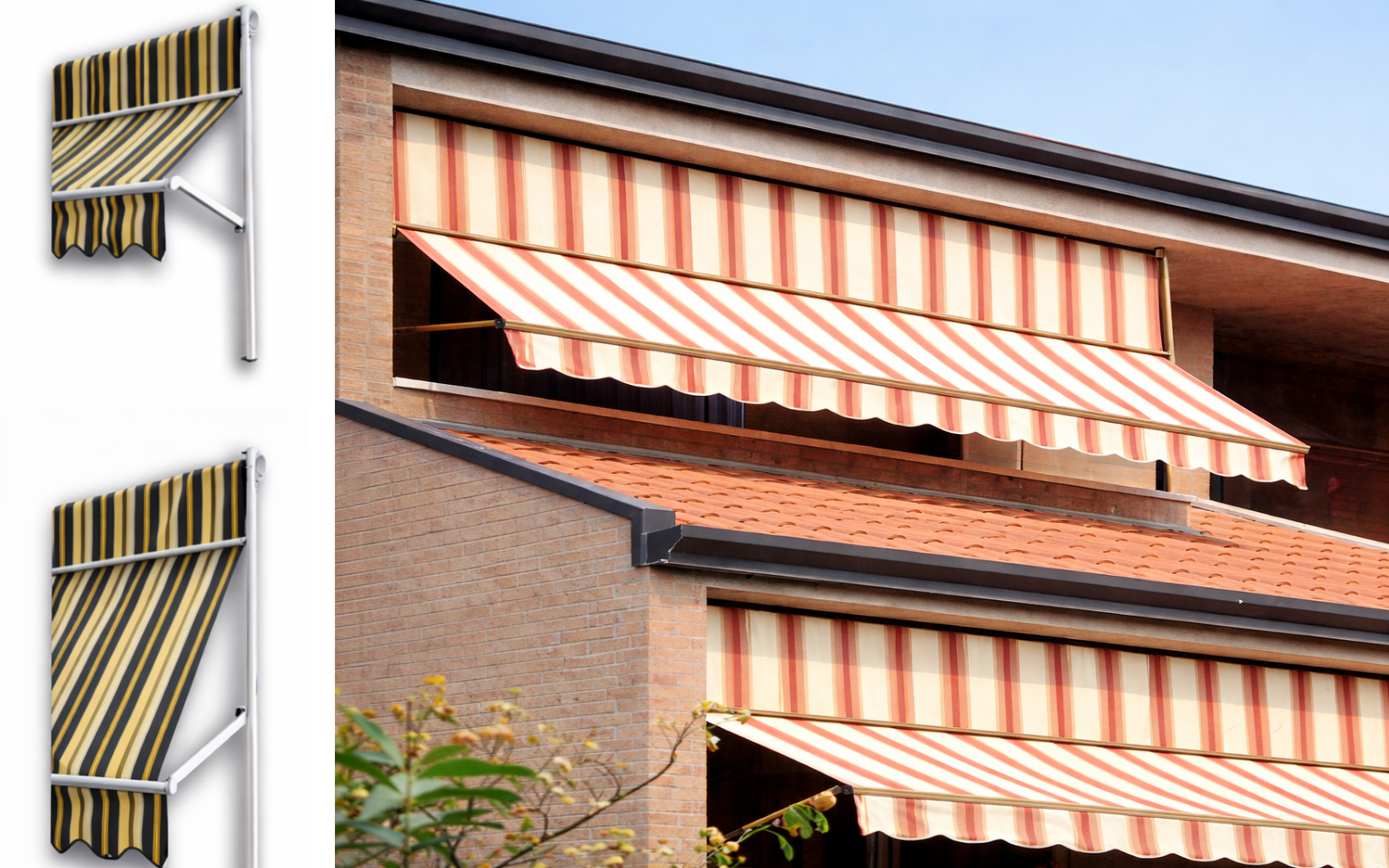 Tenda da sole a discesa verticale con cavetti inox, ideale per balconi e finestre con applicazione a soffitto o a parete.